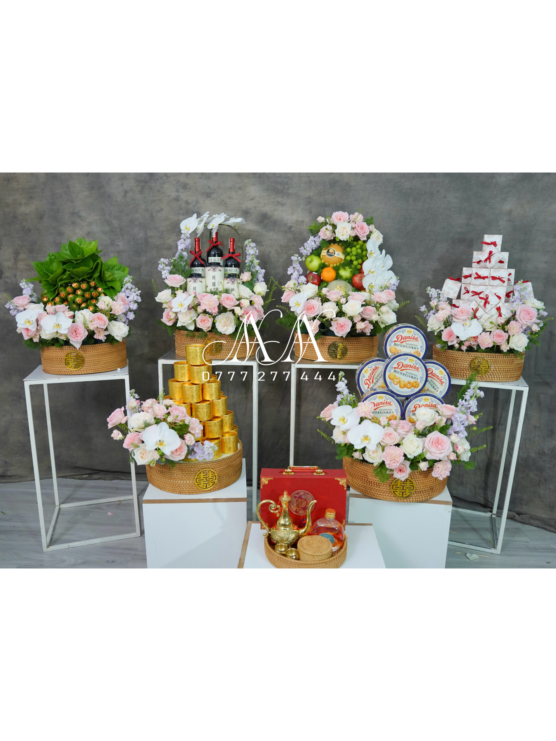 Mâm quả cưới hỏi | 6 mâm hồng pastel